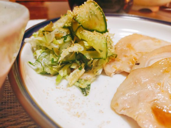 キャベツ、きゅうりとみょうが、大葉の自家製ドレ(ごまパラパラ)