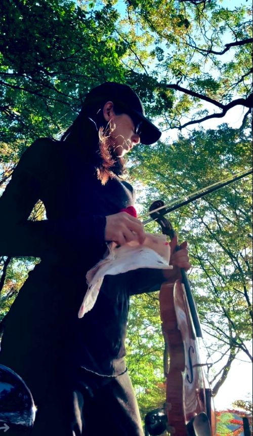 愛犬はつぶらな瞳でみつめつづけ愛鳥はわたしが目の前に立つまで呼びつづける。パパの手足となり家中を働きながら瞬く間に早朝半日とすぎてゆく。ひとま机のまえに立つとMy Violinがおつかれさま、と黙って微笑んでいる夕暮れどき。