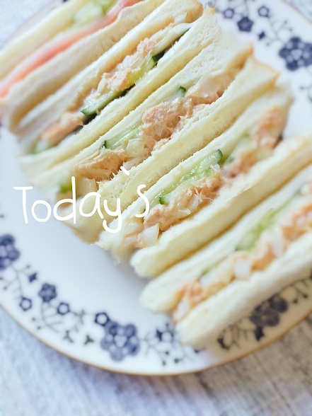 先週の「おうちサンド」はツナ・玉ねぎ・きゅうり・・・・ハムも1枚残ってた♡(笑)