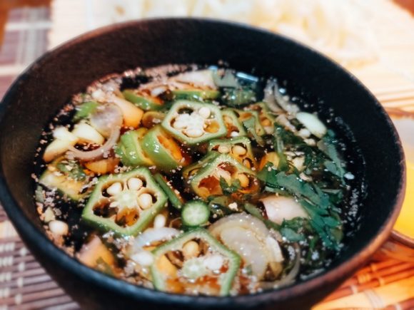 オクラ蕎麦のような出立ですが・・