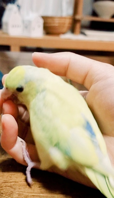 愛鳥が甘がみ上手に。おもちゃのブランコにもとうとう、下の止まり木から飛び上がれるようになって。手を叩いてほめてあげたら何回も飛んでみせてくれるところが可愛いすぎ。。♡